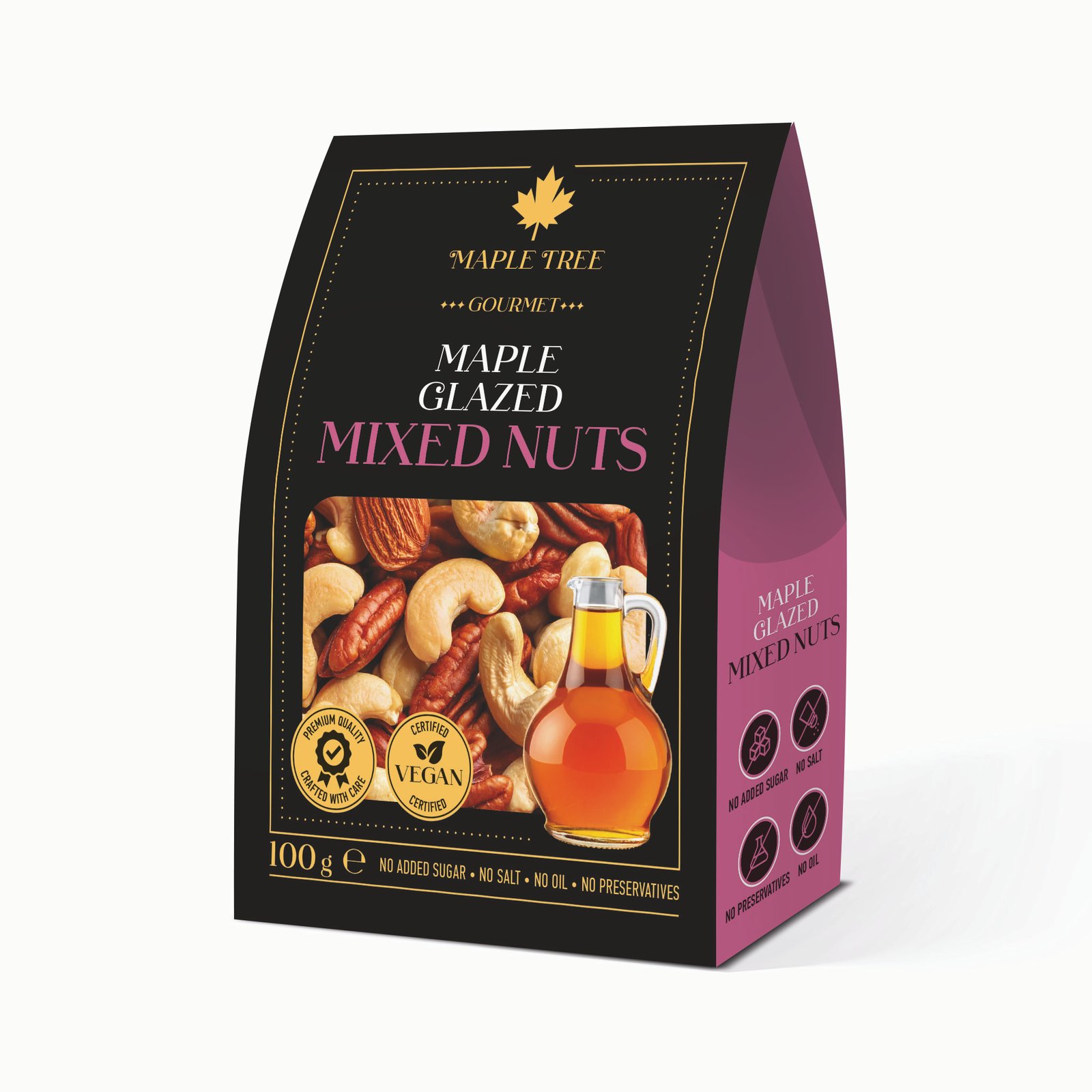 Sudedamosios dalys: anakardžių, pekano ir lazdynų riešutai, natūralus klevų sirupas.